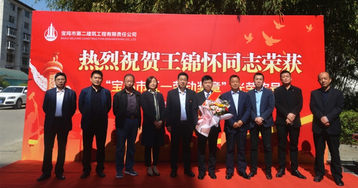 4月27日上午,寶雞市慶?!拔逡弧眹?guó)際勞動(dòng)節(jié)大會(huì)在萬(wàn)福酒店召開,公司第三十四項(xiàng)目部項(xiàng)目經(jīng)理王錦懷同志榮獲寶雞市“五一勞動(dòng)獎(jiǎng)?wù)隆惫鈽s稱號(hào)。公司在總部辦公樓前舉行了歡迎儀式,公司董事長(zhǎng)胥立、總經(jīng)理張小揚(yáng)、黨委書記景旭東、黨委副書記王紅衛(wèi)、工會(huì)主席王建成等領(lǐng)導(dǎo)出席,總部全體人員、第三十四項(xiàng)目部員工代表參加。